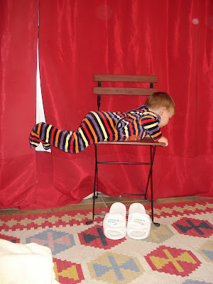 Timmy se dandine sur l'air de Mambo #5. Il commence par un "give me five" (tape dans la main) auprès de Stéphane, puis vers moi, et il enchaine avec des pas de danse. Il a appris à la garderie!