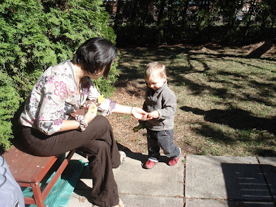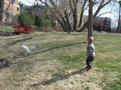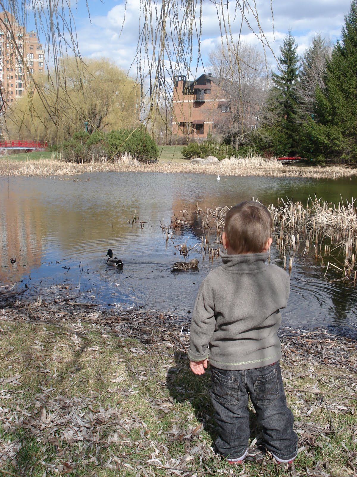 Nous avons aujourd'hui vu son ami Alexandre, 2 mois de plus, et tous les 2 sont allés nourrir les canards. Ils ont partagé sans souci les bouts de pain que nous avions. Pourvu que la notion de partage reste avec le temps!