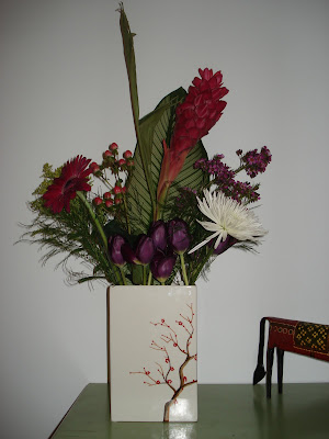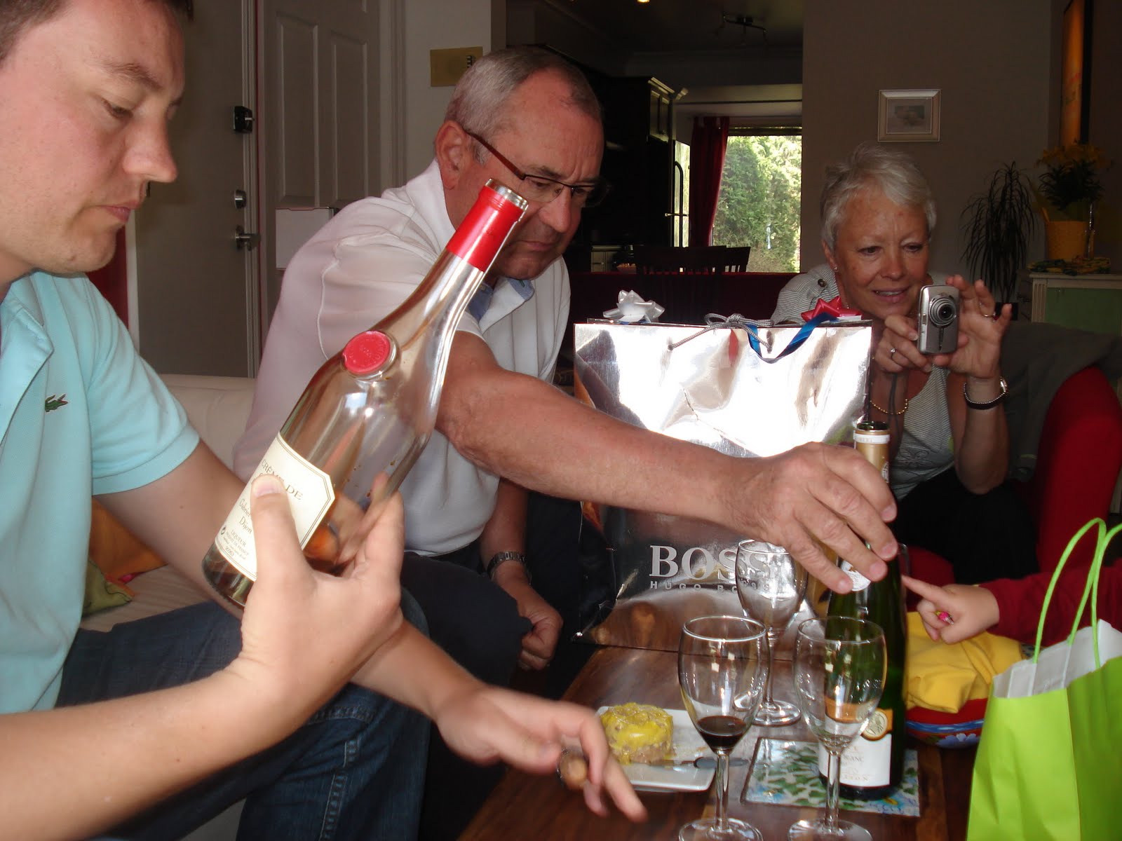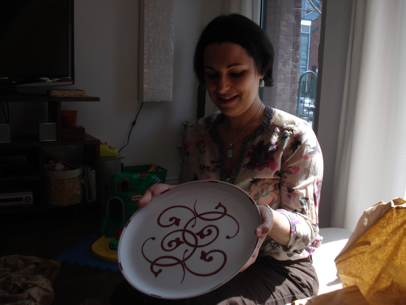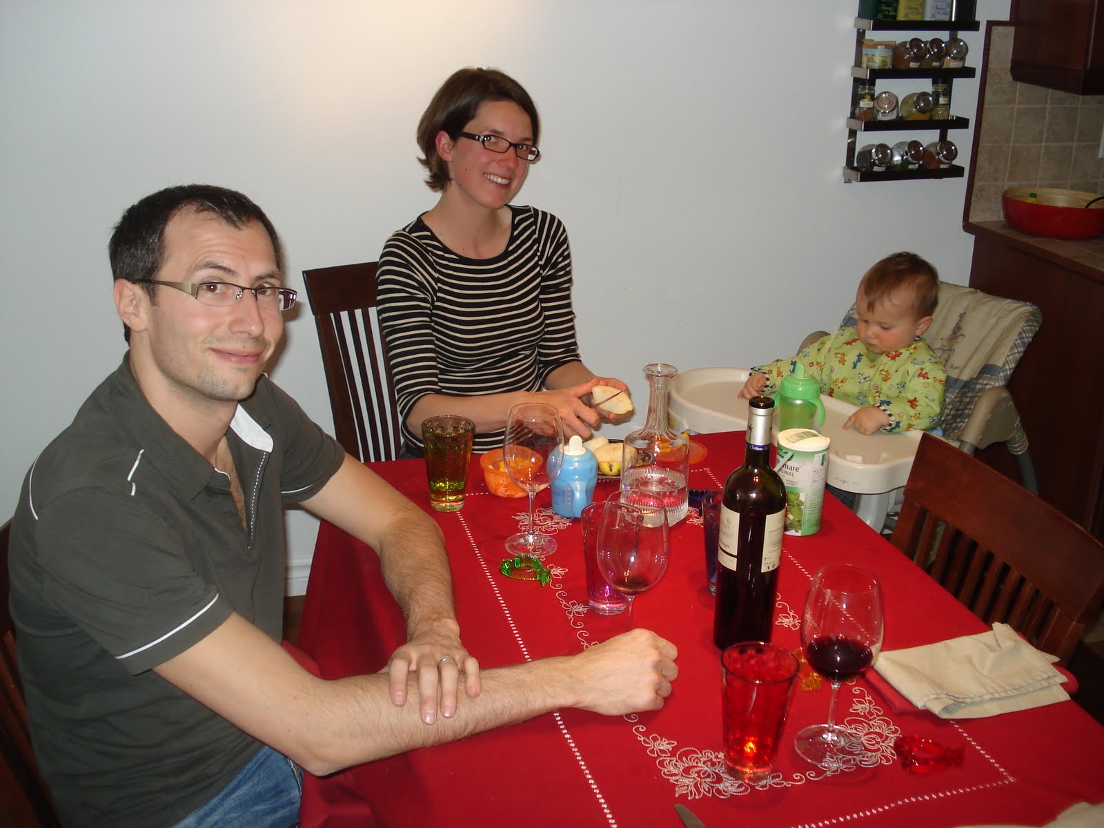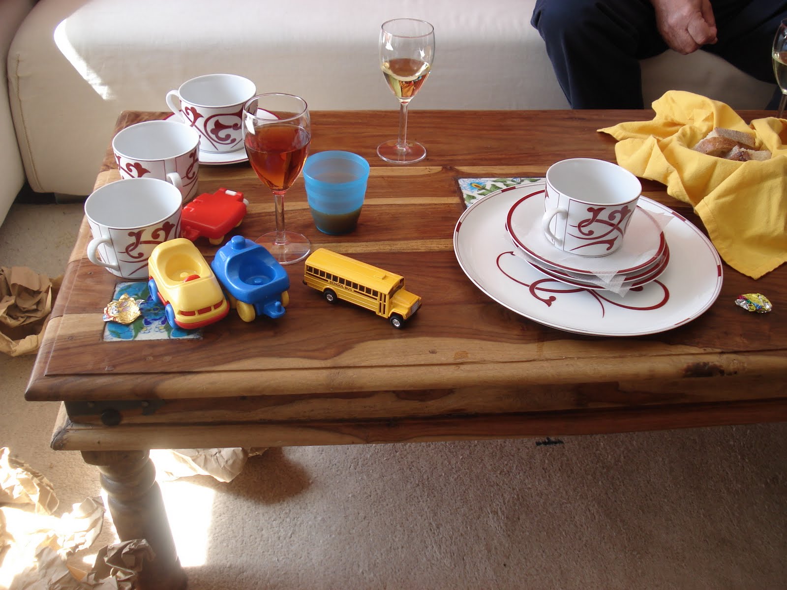 En ce jour de Pâques, Philippe et Martine m'ont fait la surprise de me fêter mon anniversaire en avance (date officielle 22 avril). Kir et cadeaux au rendez-vous! Ils ont complété le service de vaisselle rouge et blanc Guy Degrenne qu'ils ont commencé à m'offrir il y a deux ans. Je ne m'y attendais pas du tout!