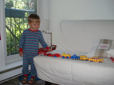 Mais il y a quand même des bons côtés à déménager, heureusement! Nous sommes ravis de notre maison, plus vaste que notre ancien appart, plus lumineuse aussi, avec en plus une grande terrasse et un jardin. Nous sommes situés plus proche de mon travail (ce qui rappelons-le était notre objectif de départ en déménageant) et cela me change la vie. Je mets 30mn max pour déposer Timmy à la garderie, Stéphane au train de banlieue et arriver au travail. Même chose le soir. Timmy s'est bien fait à sa nouvelle garderie, mais moins bien à ses nuits dans sa nouvelle chambre. Les soirées et parfois les nuits sont difficiles... Vivement qu'il s'habitue. Pas de photo pour cette fois. On vous montrera le produit fini plus tard.