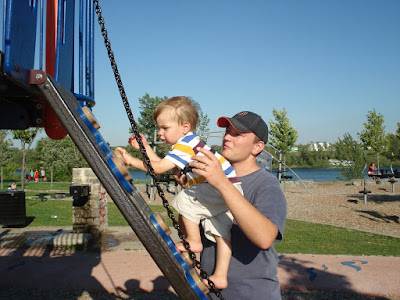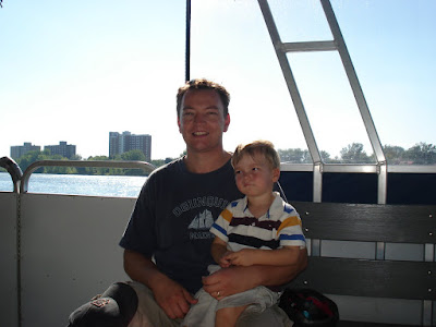 Stéphane a essayé le nouveau terrain de golf qui vient d'ouvrir à coté de chez nous (on habitera bientôt plus ce quartier alors c'est maintenant ou jamais). Sous ce soleil de plomb, nous avons concocté un petit programme sympa pour loulou histoire de faire comme si c'était encore les vacances :vélo, bateau-traversier, glace, jeux et jeux d'eau. De quoi faire sourire même avant la rentrée (enfin pour lui çca change rien, la garderie c'est toute l'année!)