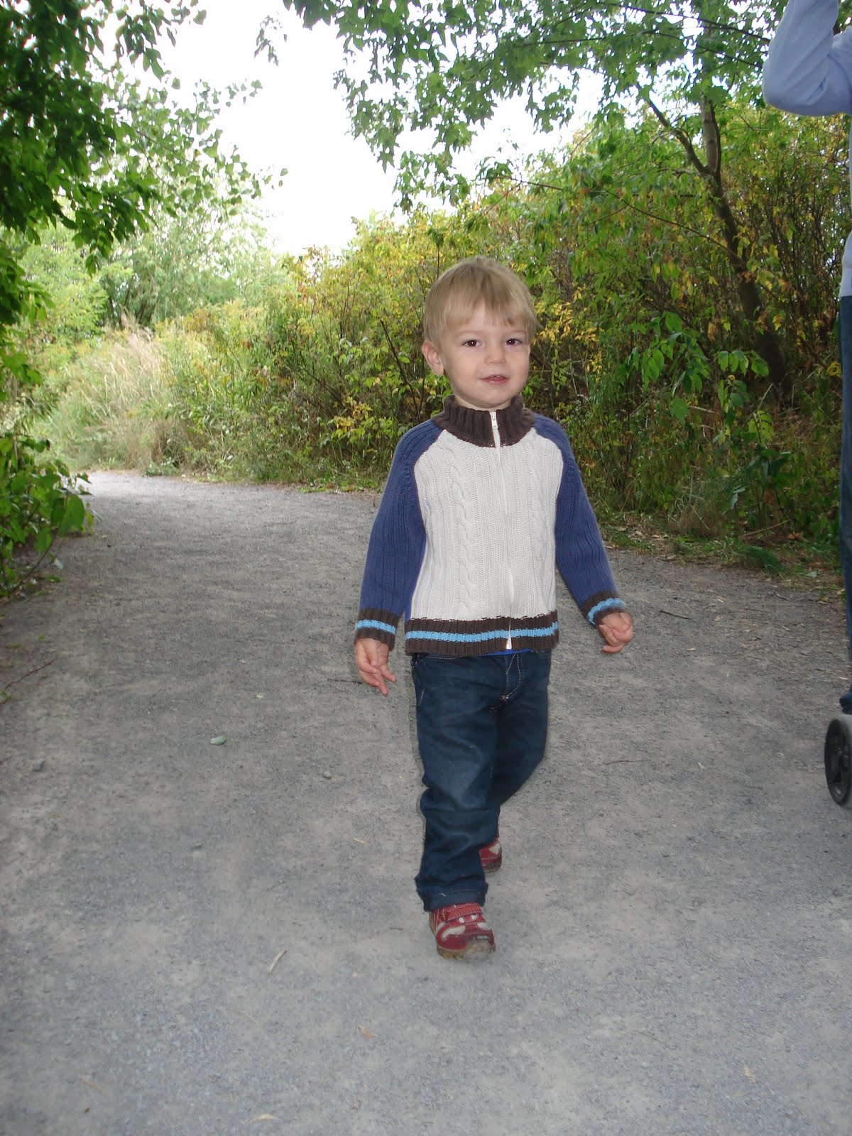 Et voilà, c'est officiel, nous déménageons dans 15 jours, le 18 septembre en fait. Nous profitons donc de nos derniers jours dans notre quartier actuel, et nous sommes allés nous balader une dernière fois dans la forêt près de chez nous. En fait on en aura une autre proche de notre prochaine maison. Plus grande d'ailleurs. On vous racontera quand on l'aura visitée. Sinon Timothée va très bien. Il est en mode "grenouille" dans le parc à coté (essaie de les attraper mais ça saute ces petites bêtes là!), fait toujours des trains avec tout, et commence à intégrer je pense l'idée que l'on déménage bientôt.