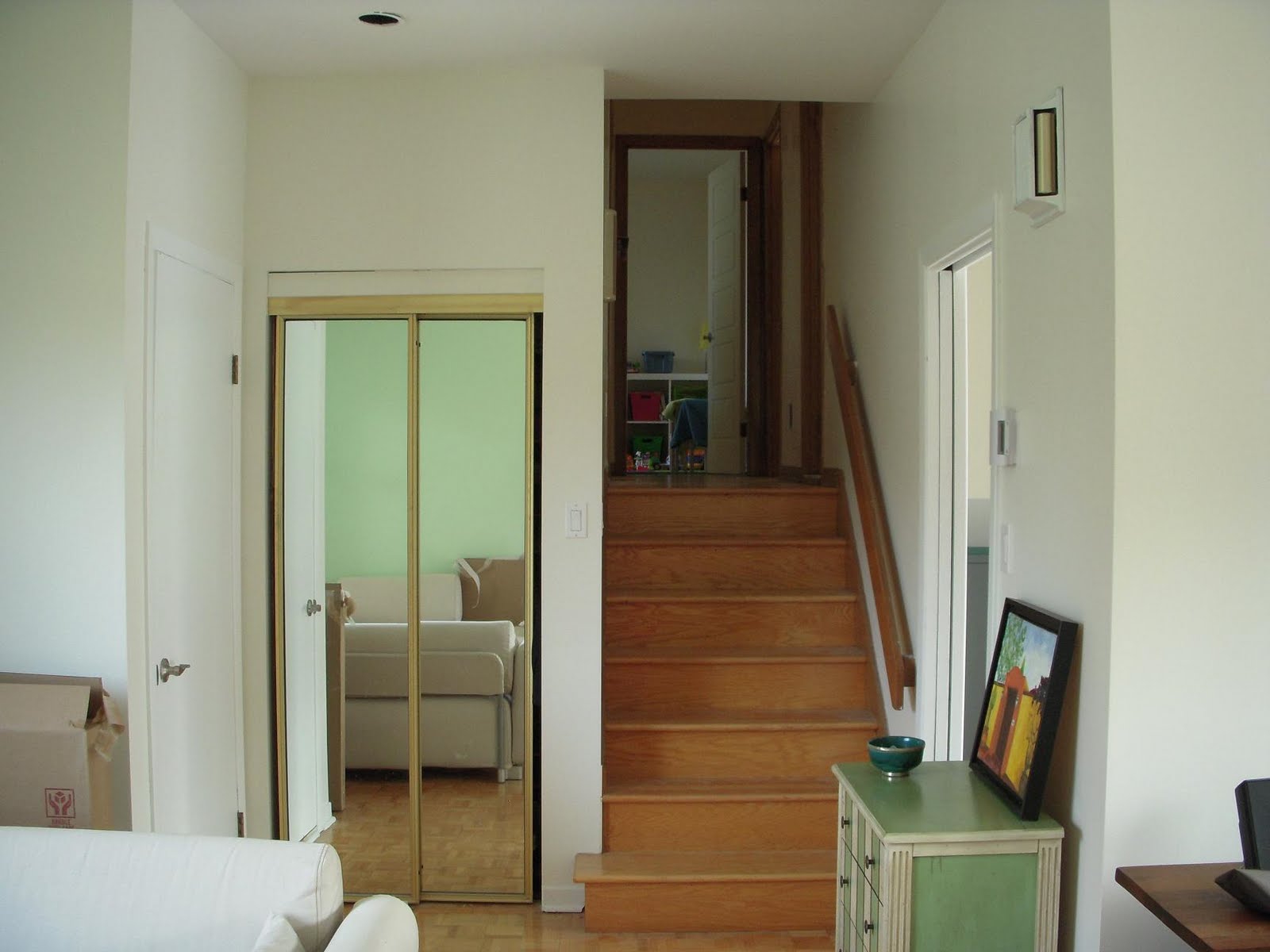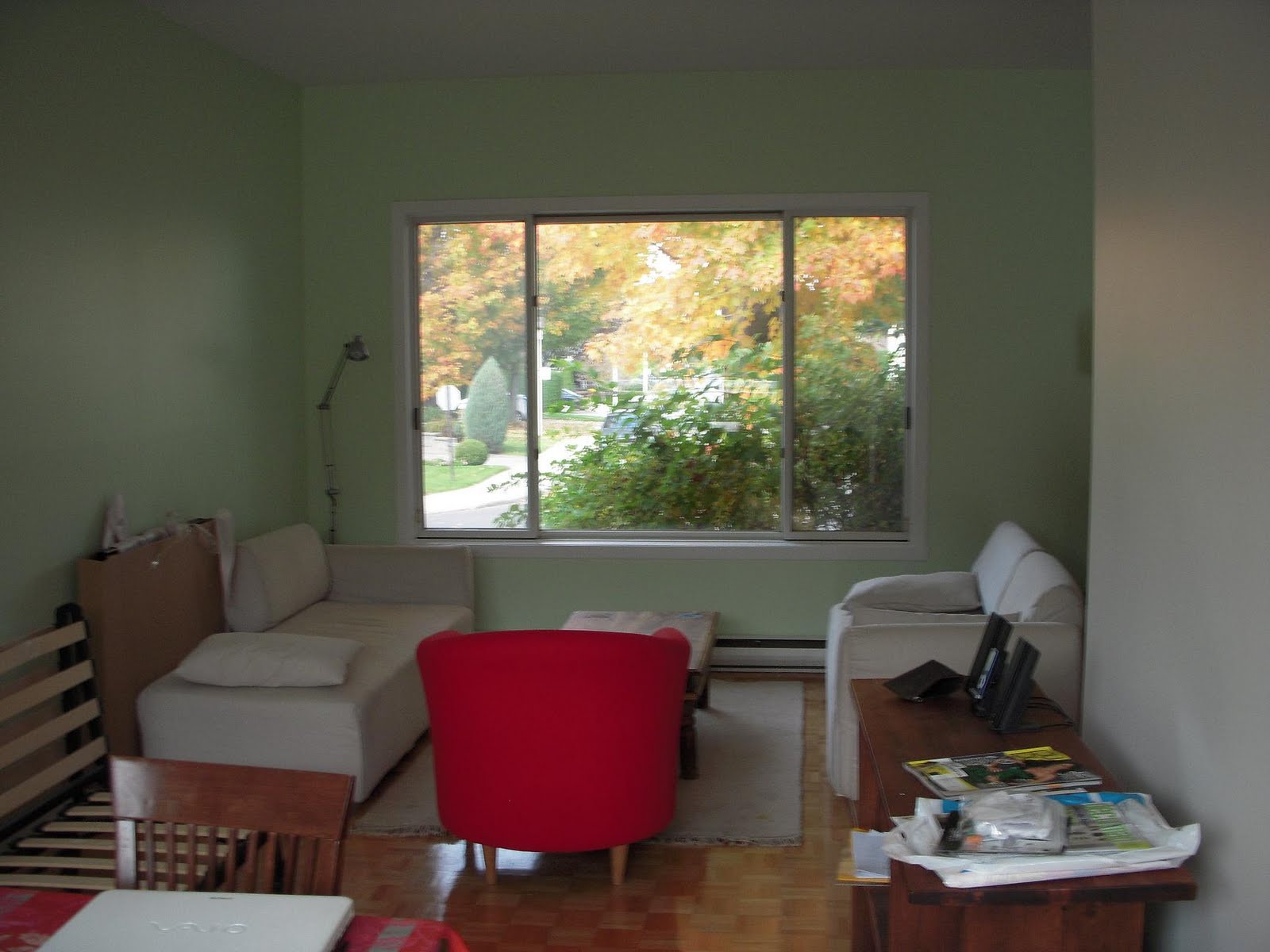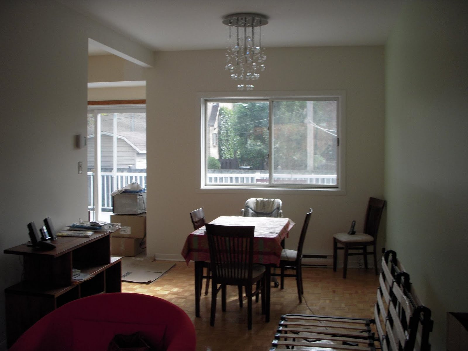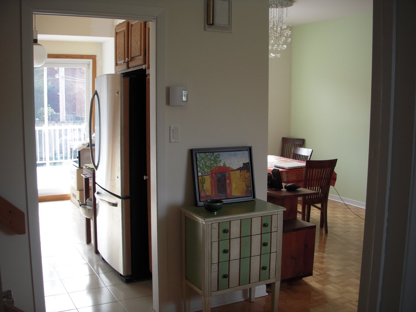Nous sommes officiellement dans les Grands Chantiers. Les murs sont enfin cassés, le sablage fait, la peinture a commencé... Il reste l'étage des chambres à peindre, la moquette à changer au sous-sol, et la cuisine à installer. Des broutilles quoi!