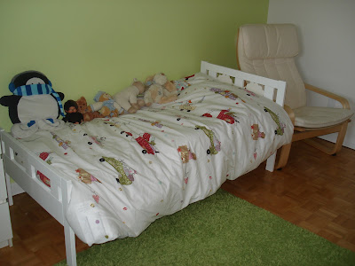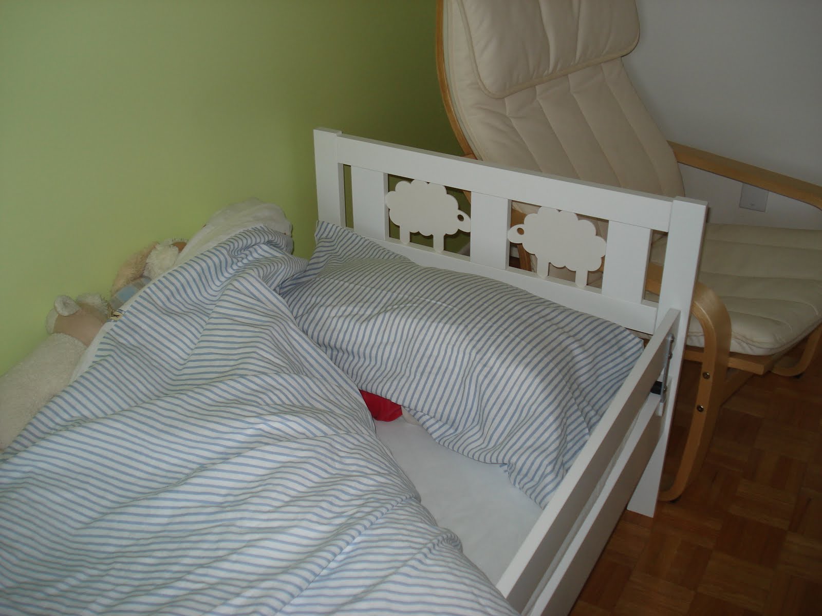 Timothée, qui est maintenant un Grand Garçon, a enfin un Grand Lit. Les 3 premières nuits se sont très bien passées, puis nous avons eu droit a quelques nuits "baladeuses": Timothée en promenade dans le couloir à 3h du mat! Mais tout semble maintenant rentré dans l'ordre. Ouf! De toute façon, il fallait bien laisser le lit de bébé, au bébé qui s'en vient! D'après Timothée, ce sera une "p'tite soeur", on saura cela fin janvier normalement. On vous tient au courant !