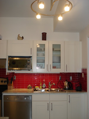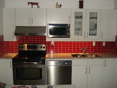Phase 34 de la cuisine officiellement terminée, à savoir la pose du dosseret de céramique. Mais reste encore le coulis à mettre, patience, plus qu'une semaine...