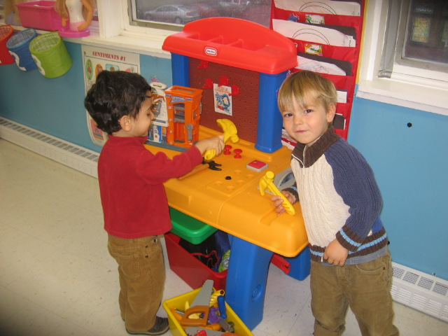 Voici quelques photos de notre loulou dans sa garderie. Ils font toutes sortes d'activités (déjà les courses!), ça a l'air top!