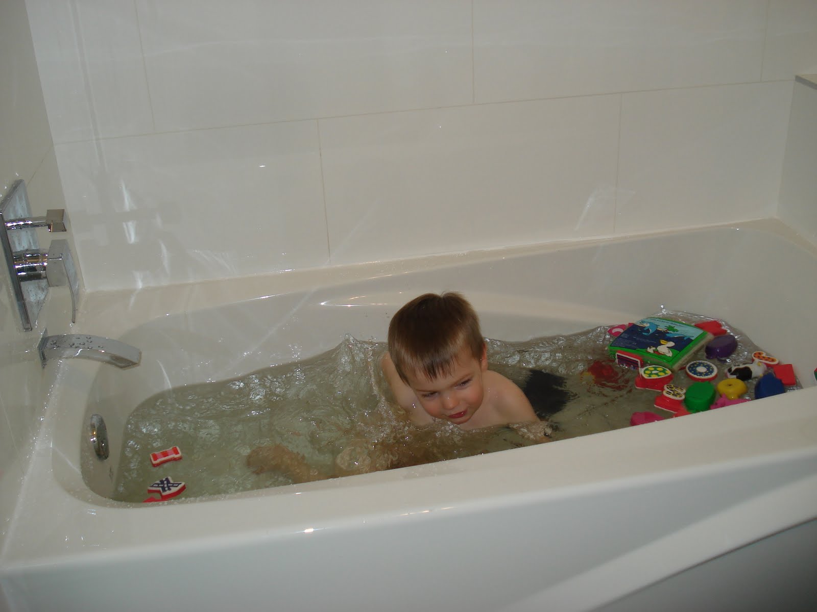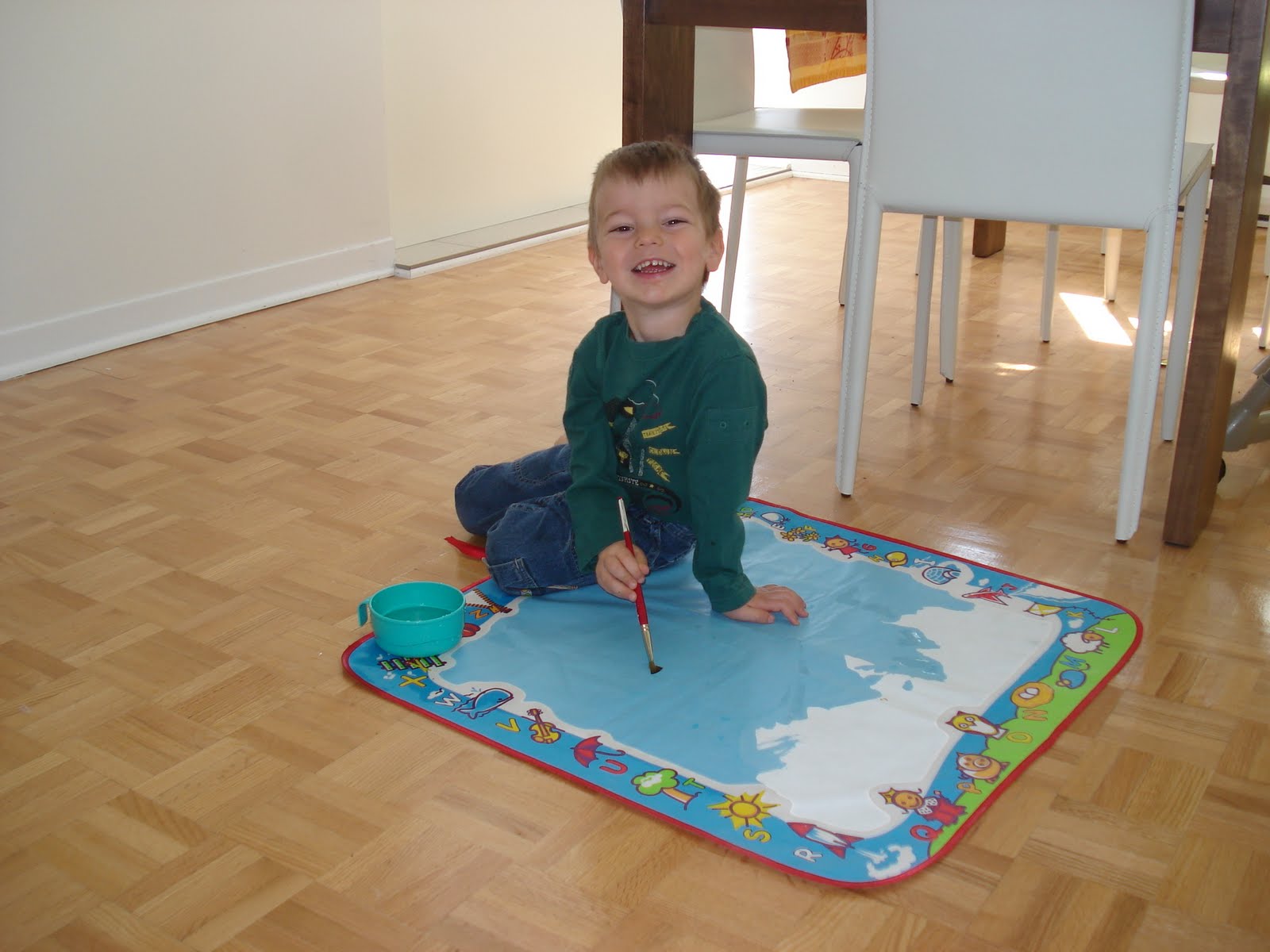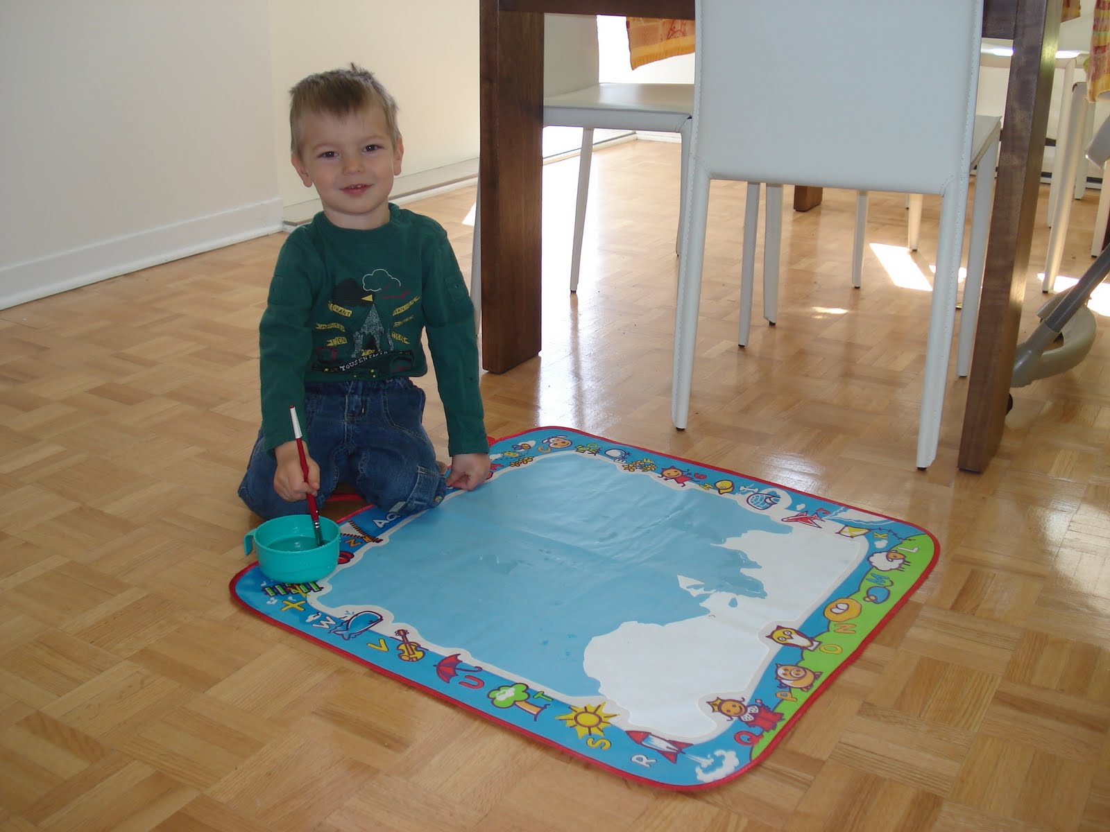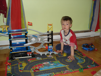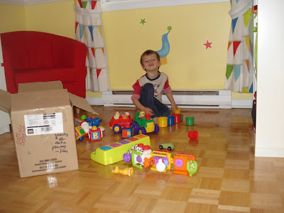 Loulou pousse la chansonnette régulièrement. Il a une nouvelle chanson préférée qui s'appelle Pilote Automatico (en portugais s'il vous plait) du groupe Montrealais Chic Gamine, et nous a chanté sa première chanson en anglais! Bon, ok, au début on a cru que c'était de l'arabe. Son accent (et probablement celui de son éducatrice), c'est pas encore ça, mais ça viendra...