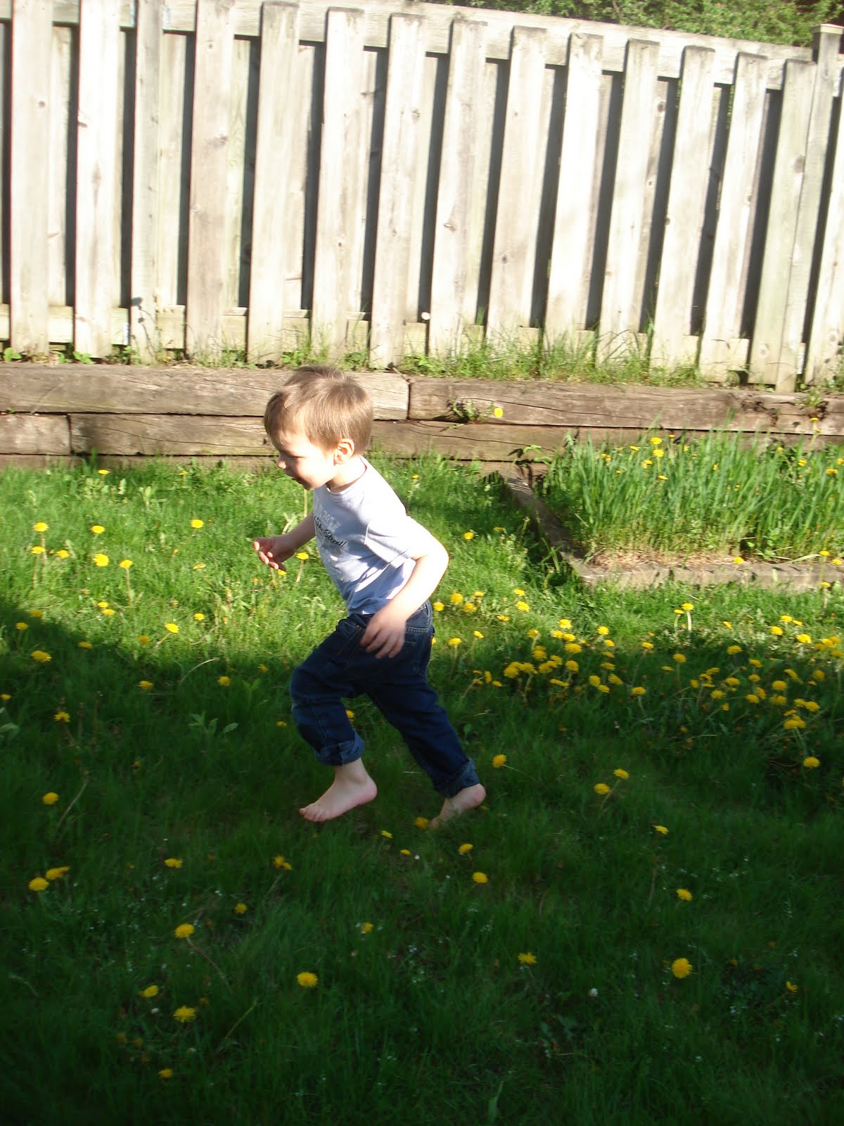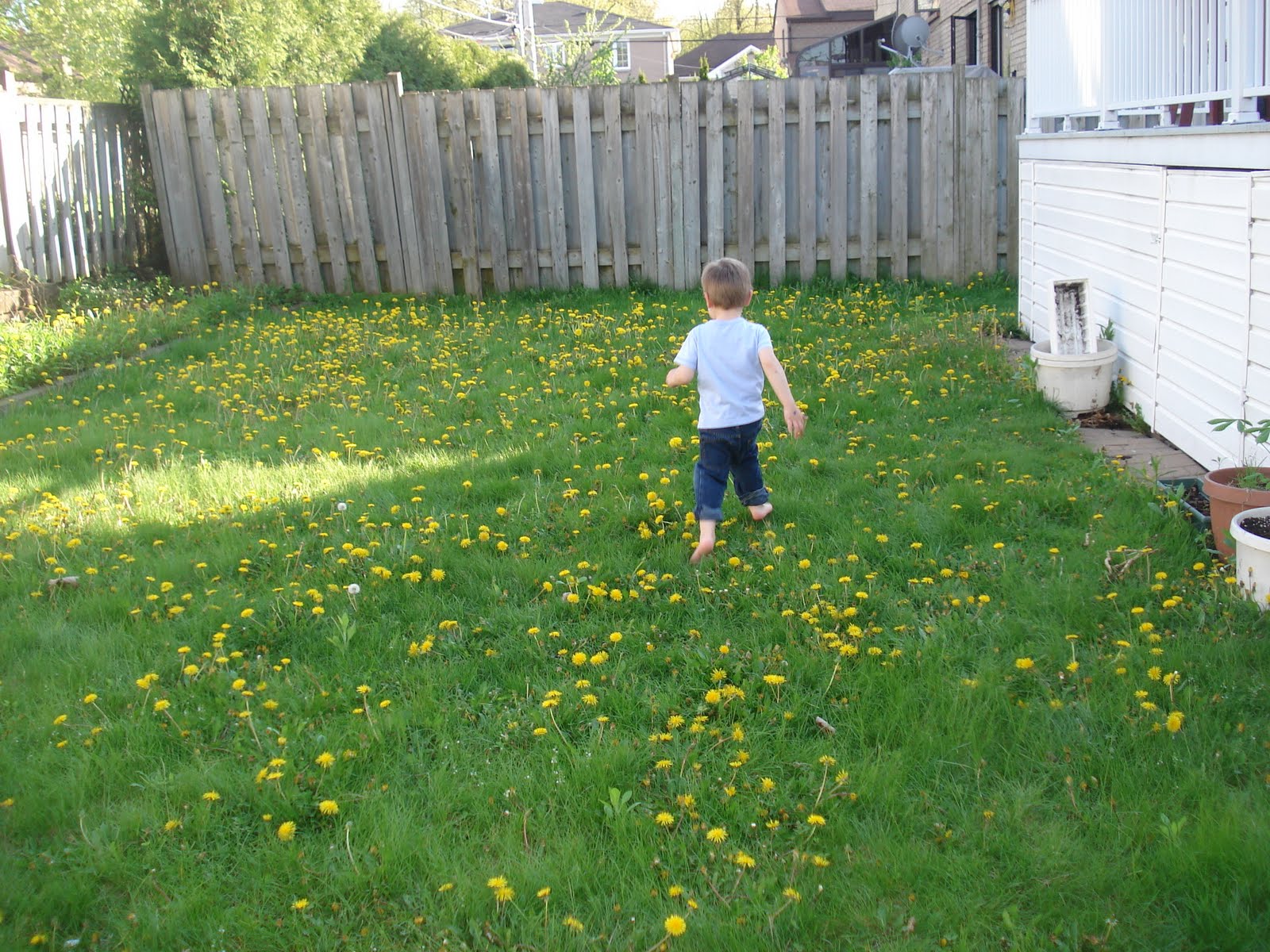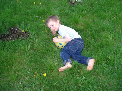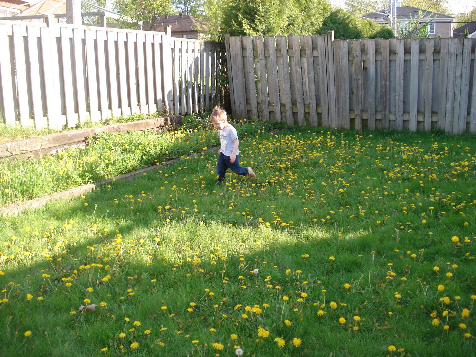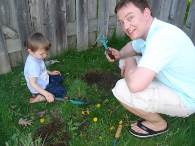 Il s'éclate dans le jardin et nous aide même à jardiner. Plusieurs de mes collègues m'ont donné des vivaces, j'ai donc de quoi embellir notre jardin qui n'a pour l'instant QUE de l'herbe. J'ai l'embarras du choix : Iris, lys, muguet, anémones japonaises, hortensias, et toutes sortes de noms latins barbares... Vous verrez bien! J'ai un mois pour tout planter et donner un semblant de dignité à ce bout de terrain.
