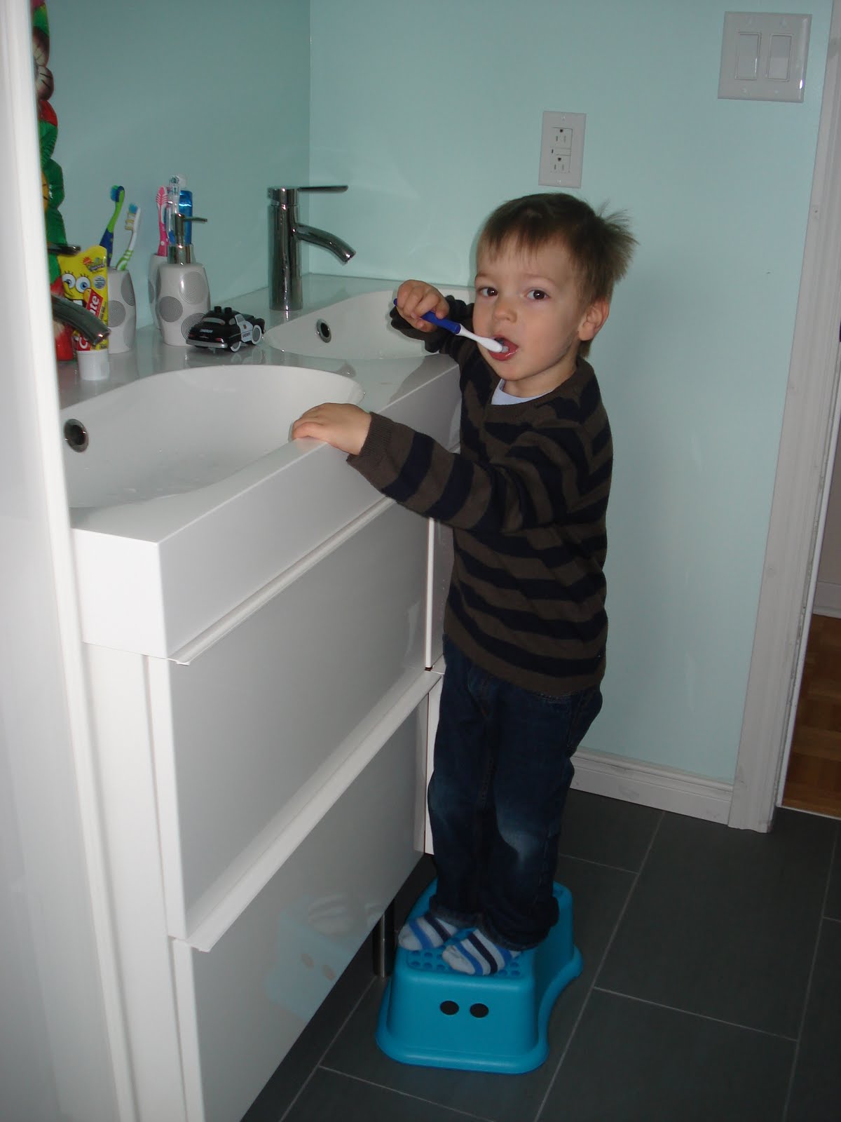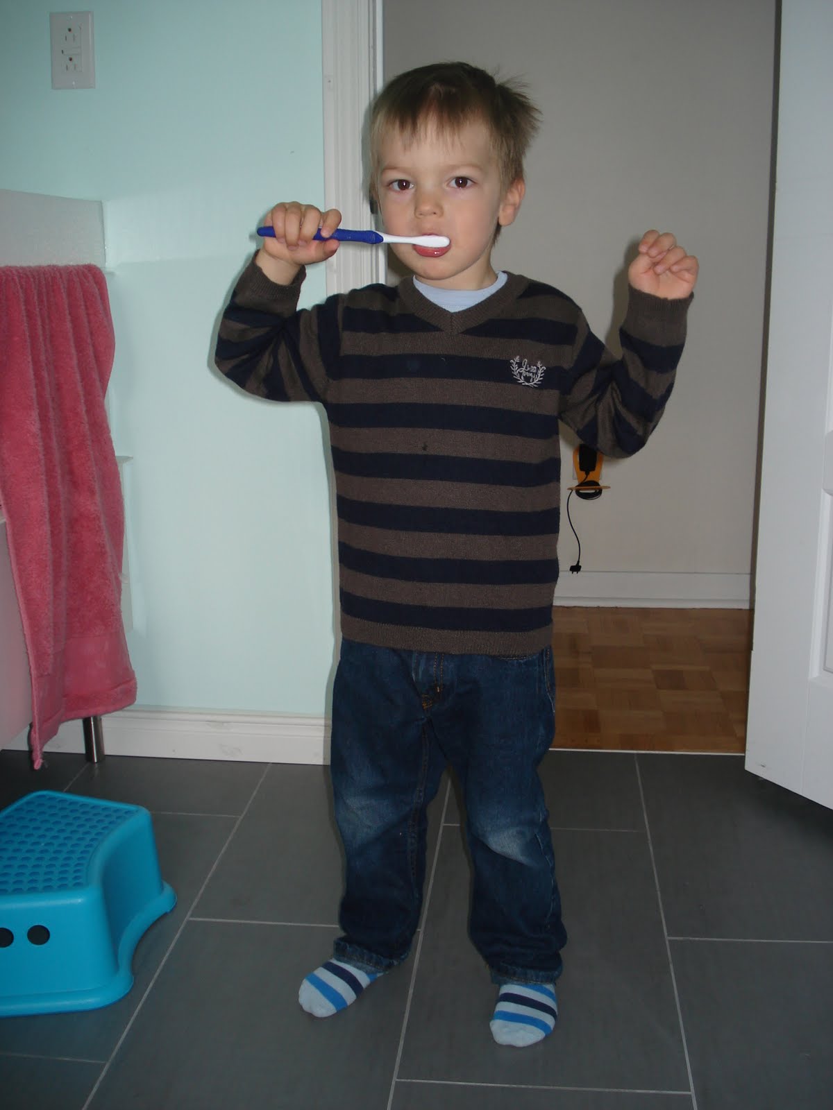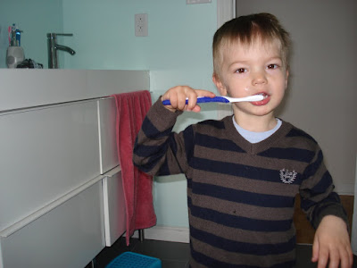Il adore se brosser les dents le matin (le soir on n'y pense jamais).
