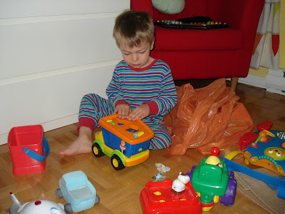 En attendant, Loulou va bien. Il aime le prénom qu'on a (enfin!) presque choisi définitivement pour son petit frère (on ne vous dira rien:-) ). Il me rappelle que "lui aussi sur les photos il était un petit frère" (comprendre un bébé dans notre album photos)