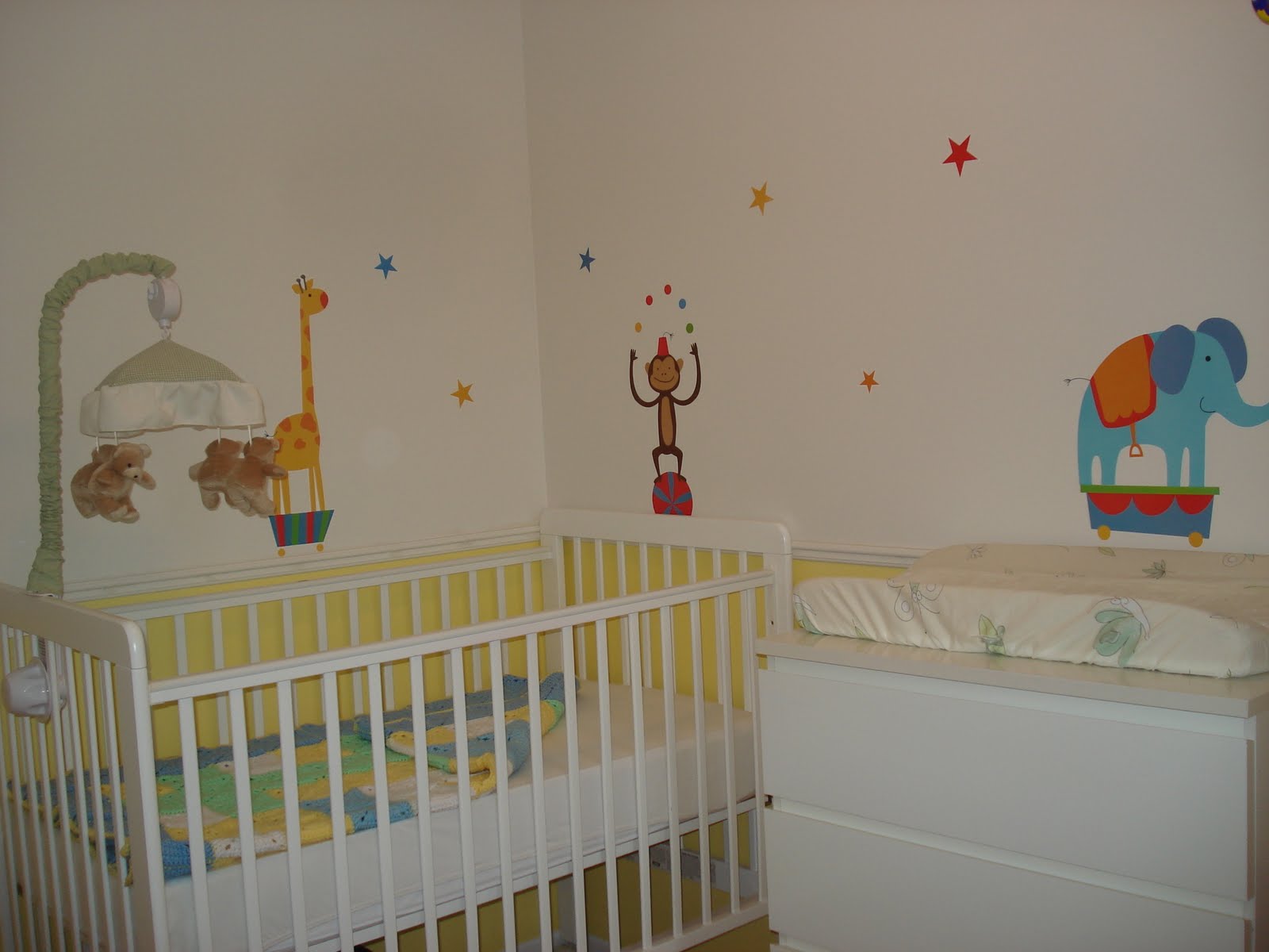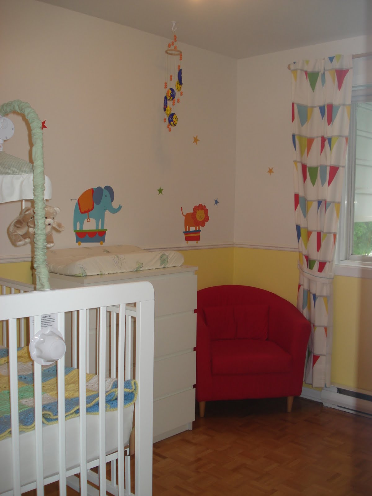 Et voilà, je suis enfin en congé maternité. C'est pas trop tôt! Entre Timothée, mon nouveau job, et la nouvelle maison, j'ai pas vu le temps passer! Et je m'aperçois à J-30 (de l'accouchement) qu'il il va falloir installer la chambre de bébé! Cette pièce était jusque là un mélange de bureau, placard-salle-de-bain-pendant-les-travaux, début-de-chambre-de-bébé. Si Steph tient ses promesses, le lit sera remonté d'ici lundi soir, et on pourra enfin en faire un vraie belle chambre de bébé. Photos à venir, donc...