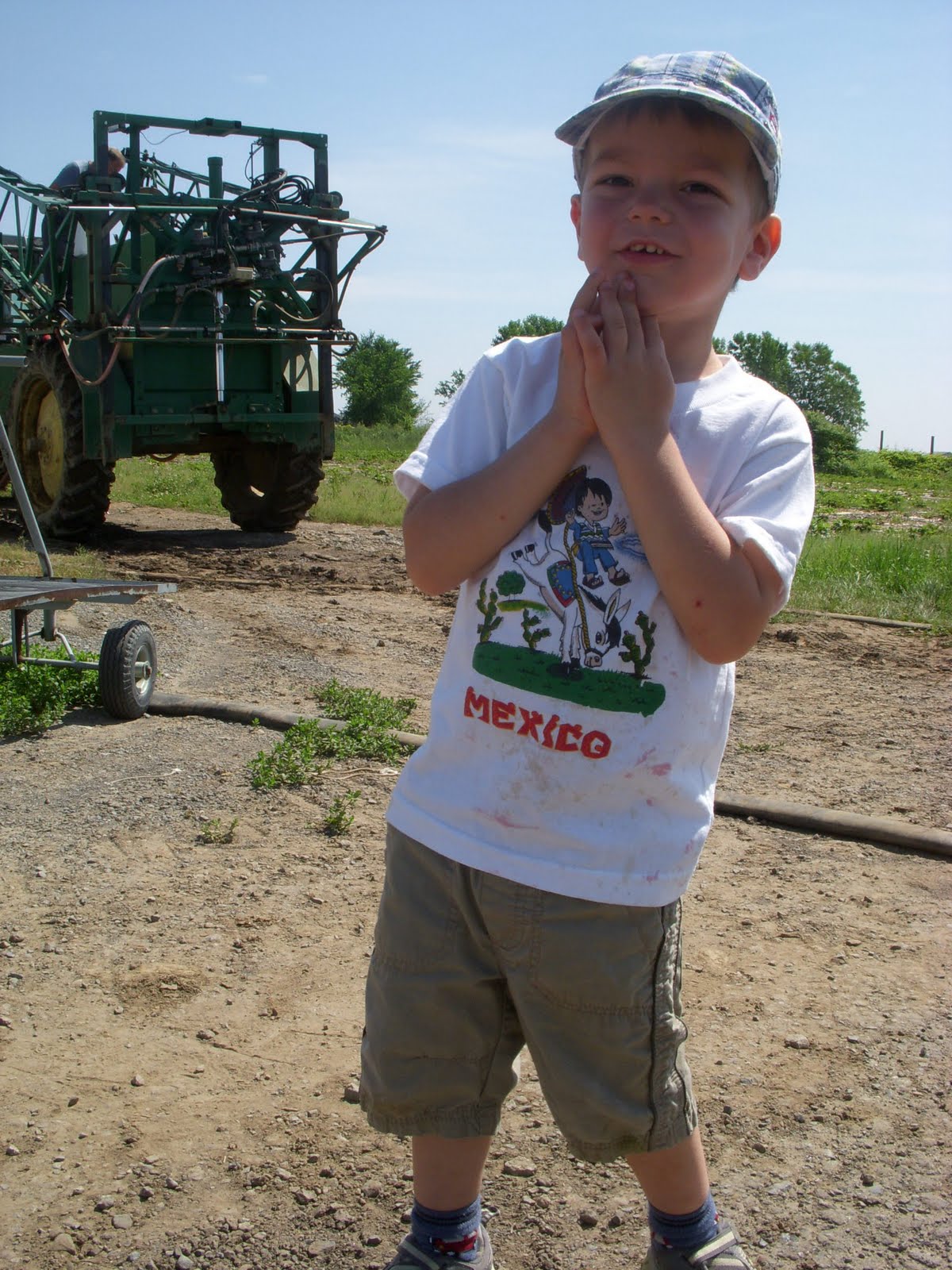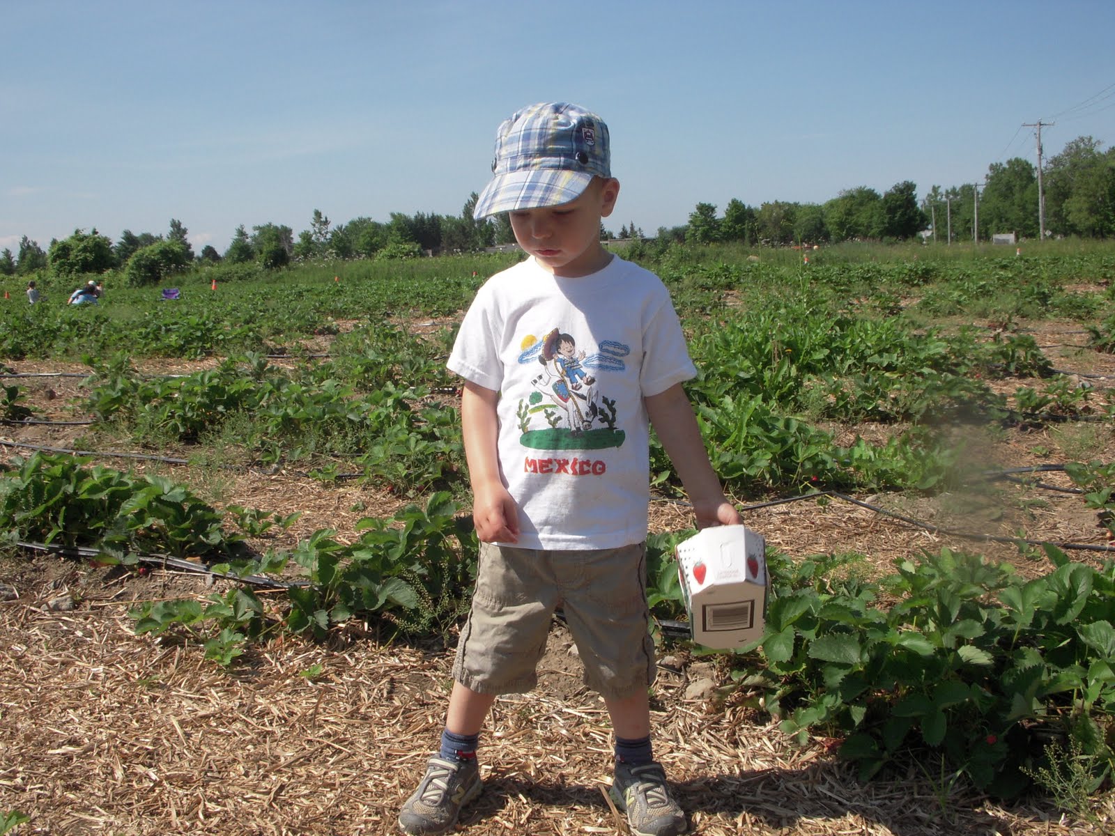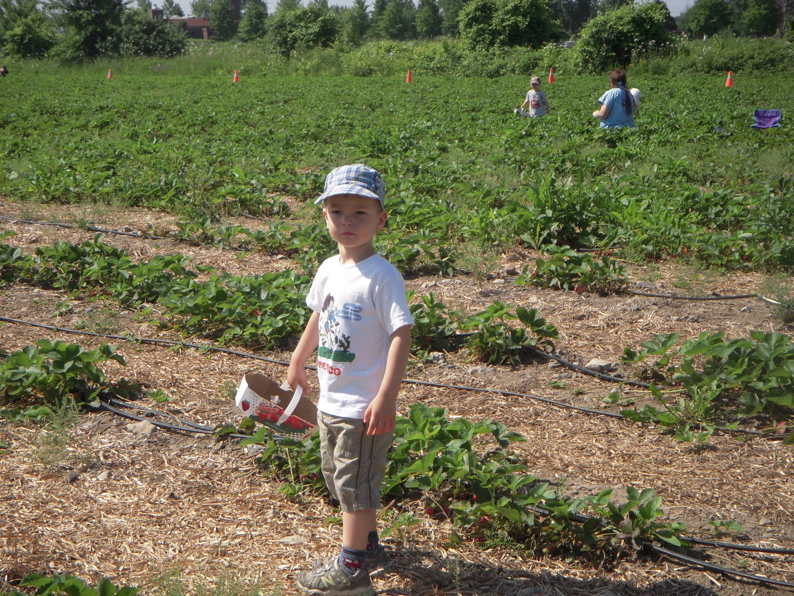 Timmy s'intéresse plus au tracteur qu'à remplir son panier de fraises!