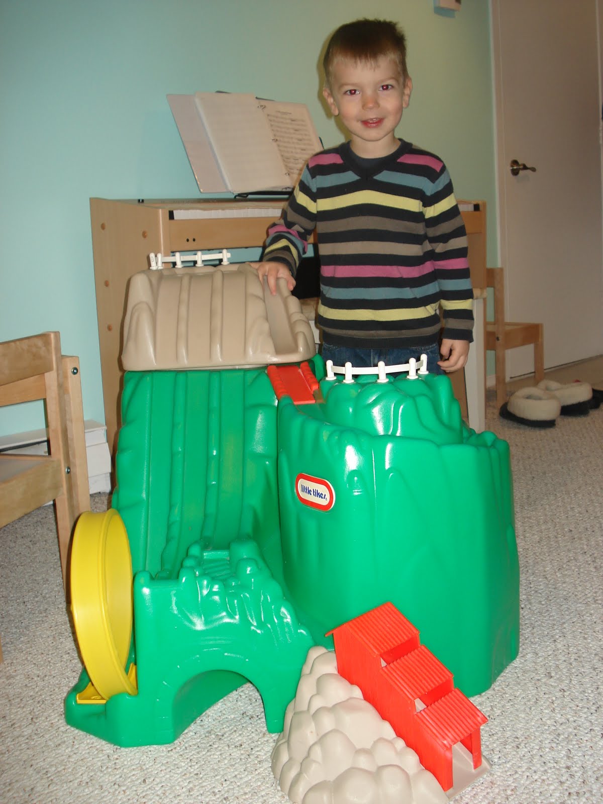 A part ça nous avons une nouvelle baby-sitter, Émilie, qui habite à 10mn de chez nous et ça c'est pratique ! Elle est sympa et a même offert à loulou une vielle grosse montagne en jouet qui appartenait à ses petits frères. Loulou s'éclate avec. Photo à l'appui !