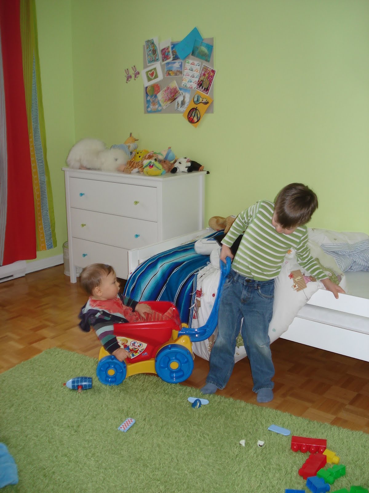 Il a commencé un cours de gym pour enfants il y a 15 jours. Apres des débuts difficiles (peur de rester seul), on dirait qu'il commence à s'y faire. A suivre...